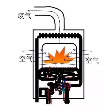 燃气热水器是利用煤气或者天然气燃烧产生高温烟气,加热热交换器,将流过的水加热。打开水龙头会触发微动开关(或流量传感器),接通打火装置,燃气电磁阀(或燃气比例阀)开启,进行点火并在燃烧室进行燃烧,将热交换器加热,水在其中流过(或通过水量伺服控制),水就变热了。就好似一个可以自动开关、调整火力的煤气灶一样。